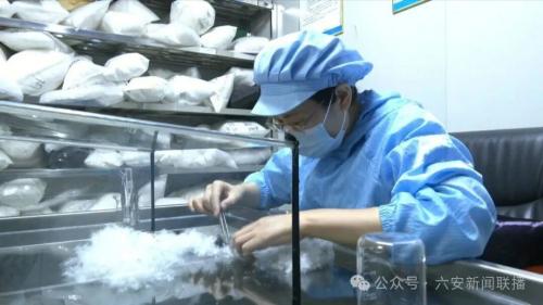 走进安徽博隆羽绒科技有限公司,生产车间内自动化场景随处可见,洁净的羽绒在自动化管道中流动,经过多道精细分拣与水洗工艺,变得蓬松柔软、洁净如云,为后续高品质制品加工奠定基础;分拣区域里,工人根据绒朵大小、蓬松度等指标,对羽绒进行精准分类。