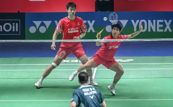 女双赛场,刘圣书/谭宁对阵队友李怡婧/罗徐敏。作为世界排名第一的组合,刘圣书/谭宁全程占据主动,最终以21比14、21比15赢下队内德比,较为轻松地晋级半决赛,延续了上周马来西亚公开赛夺冠后的良好势头。
